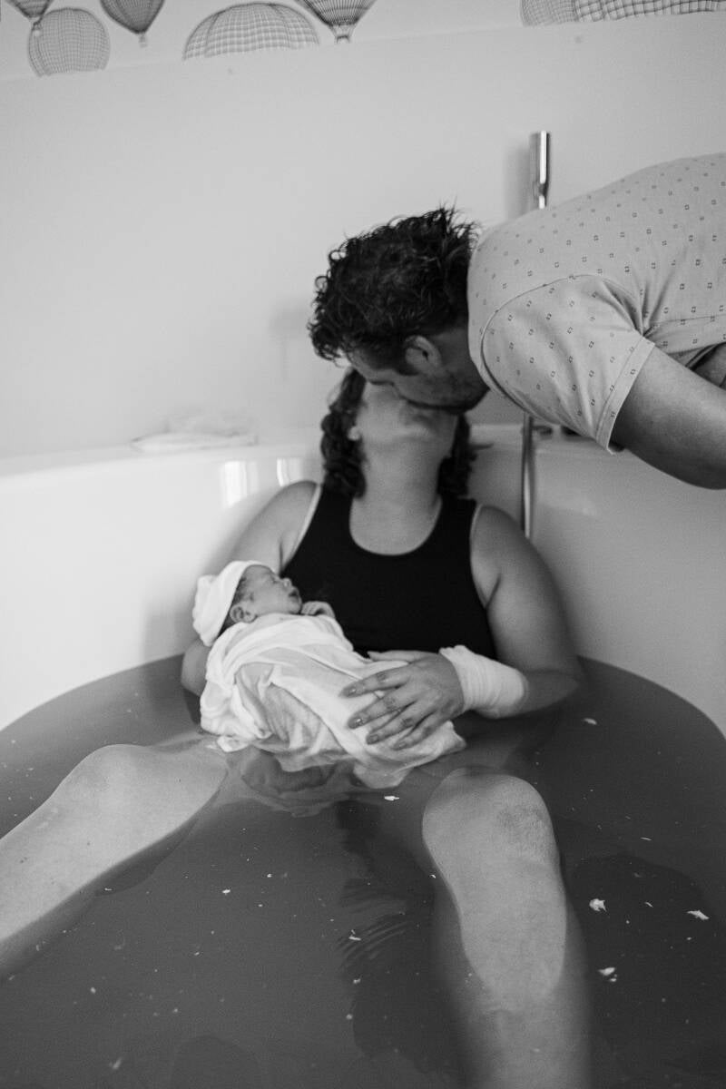 Dayn moest af en toe even in het gezicht geblazen worden om er even bij te blijven. Maar hij huilde goed. Niets mis met zijn longetjes. Hij lag heerlijk bij in, in het warme water. Toen moest natuurlijk de placenta nog komen. Ik voelde echt amper nog wat om de placenta geboren te laten worden. Gelukkig had ik de beste verloskundige bij me, en was de placenta er ook snel. Bij de andere 2 bevallingen was het zo dat zodra de placenta er was, ik hem eigenlijk ook niet meer gezien heb. Omdat de placenta nu nog vast zat aan Dayn, kon hij nog nergens heen. Dus Chantal heeft het op mijn been gelegd en vertelde hoe en waar alles zat. Wij hebben konden de navelstreng nog heel mooi voelen kloppen en ik heb voor het eerst een placenta gevoeld. Ik vond dit zo bijzonder, om echt te zien waarin mijn kindje heeft gegroeid. Waardoor hij is gevoed en wat 9 maanden zijn warme en veilige huisje is geweest. Ze vroegen ons wat we met de placenta wouden. Je kunt er tegenwoordig zulke mooie dingen mee doen. Bij de verloskundige in praktijk staat een prachtige afdruk van een placenta, dat had mij ook wel heel erg mooi geleken. Maar Remco en ik hadden het niet gehad over de placenta bewaren, dat ik maar zei dat het wel weg mocht. Ik dacht dat Remco het wel heel erg gek zou vinden als ik zou zeggen dat ik het wel mee wou nemen. Achteraf zei hij, dat hij het ook wel mee had willen nemen. Helaas pindakaas, hadden we maar even moeten overleggen. Al met al wat dit een droombevalling. Al toen ik zwanger was van Jax zou ik graag in bad willen bevallen. Bij Jax en Ivy kon dit niet, dus ben heel blij dat het nu wel gelukt is. Met mijn eigen verloskundige en niet van het ziekenhuis, met Cathy de fotograaf erbij, alles was precies zoals ik gehoopt had. 🙏🏽